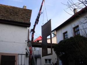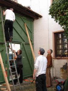 Letztendlich wurden ca. 40% des Holzes bestandsgemäß erneuert, alle Schalbretter mit Ziehklinge und Fön entlackt, neue Torpfannen angelegt, sämtliche Beschlags- und Metallteile aufgearbeitet, alles mit (schwedischen) Leinölfarben gestrichen und wieder eingepasst. OK; ein neues Tor wäre günstiger und schneller realisierbar gewesen, aber ob das auch wieder rund 150 Jahre halten würde ?