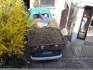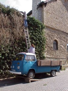 ...gibt es natürlich reichlich. Ein besonders Thema ist hierbei immer wieder das Zurechtstutzen des Efeus. Komplett entfernen kommt nicht in Frage, schließlich wohnt ein großer Teil der Vogel-Spatzen Population des Ortskerns bei uns; Besitz verpflichtet !