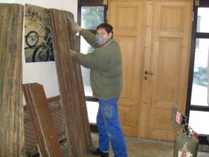 Entlacken der Schalbretter im Winter bei 0°C Provisorisches mit Durchblick